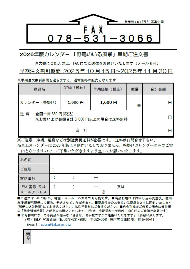 ご注文は FAX のほか、電話・ハガキ・メールでも可能です。